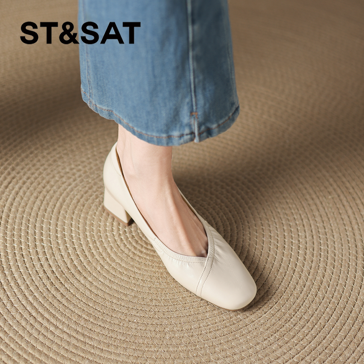 B2616CQ5 不累脚粗跟尖头女浅口单鞋 百思图25秋商场新款 裸色高跟鞋