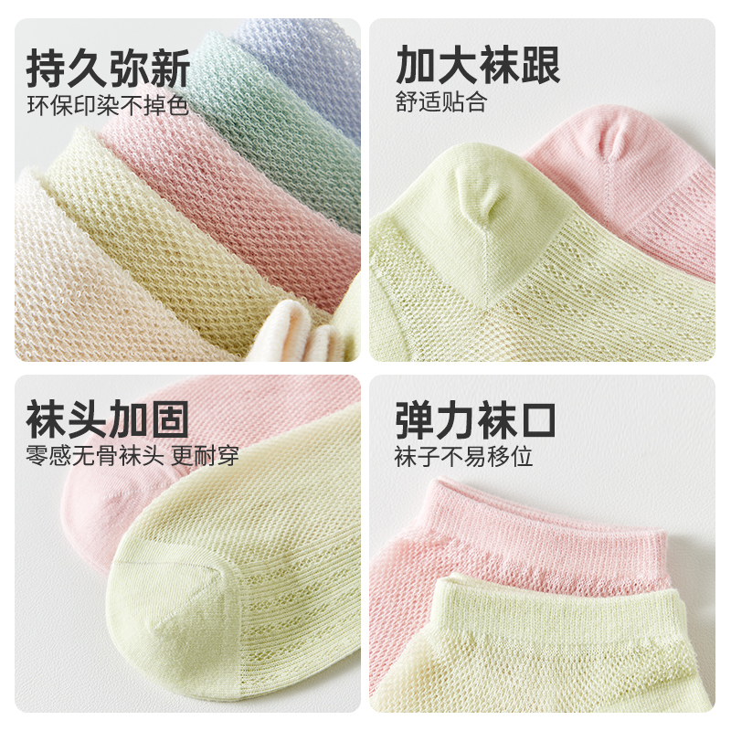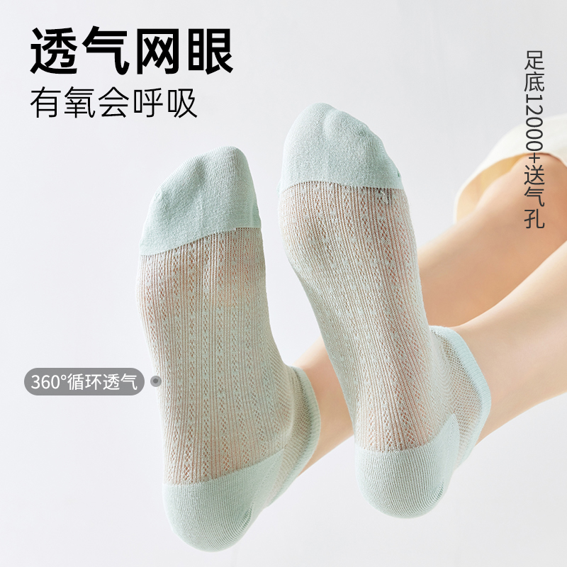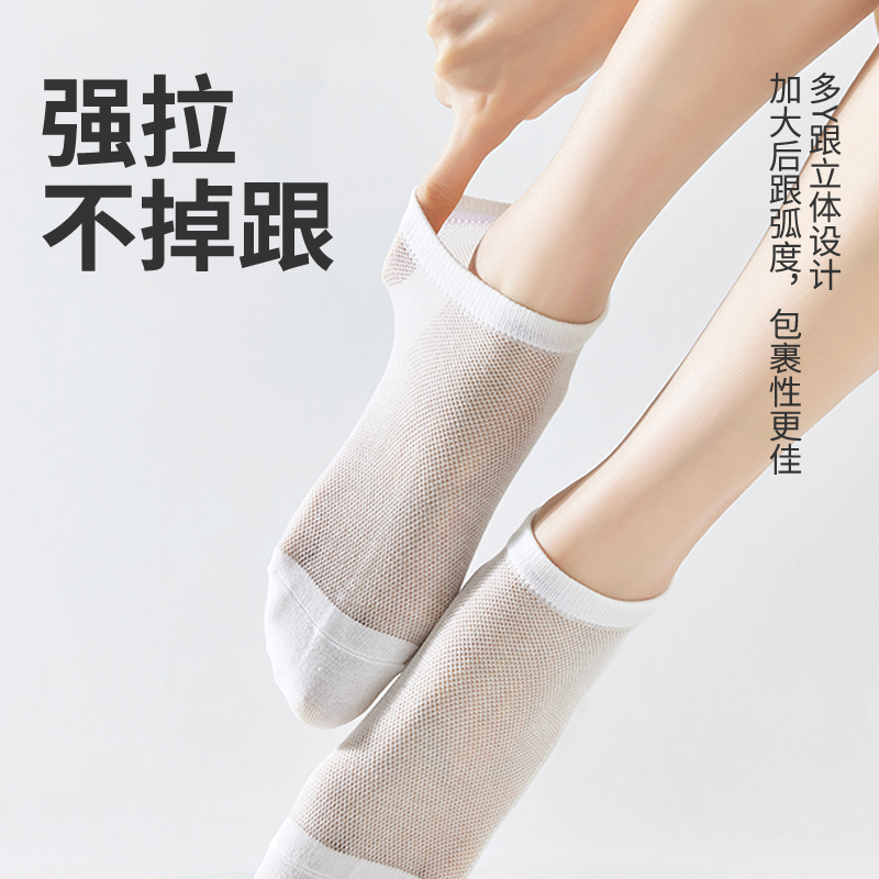 爱莎袜子女士夏季 短袜女生白色网眼透气夏天防臭浅口防滑船袜 薄款