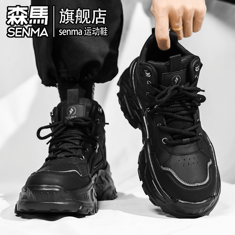 高帮百搭休闲跑步真皮防水运动增高老爹潮鞋 秋季 男鞋 森马网红爆款