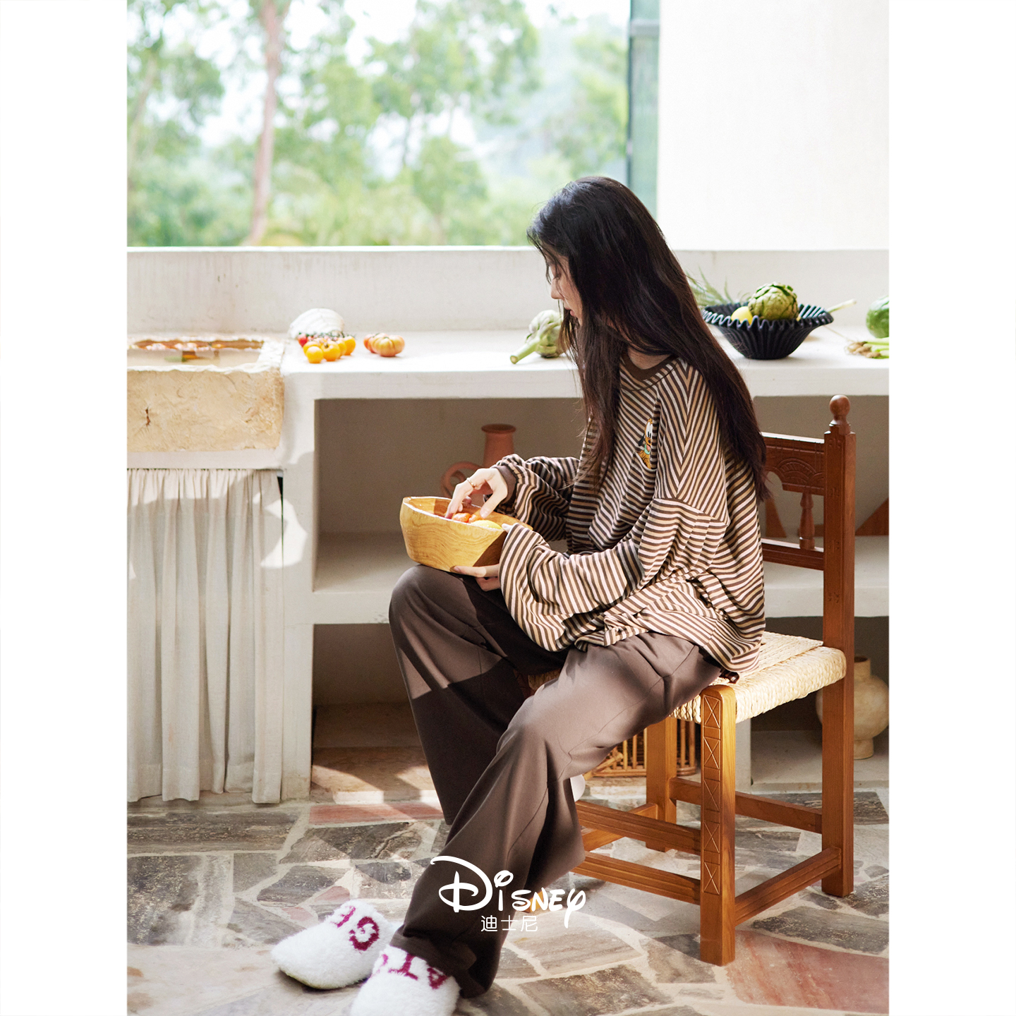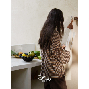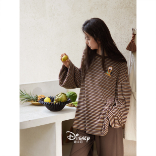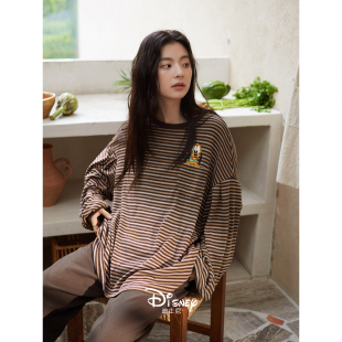 套装 迪士尼睡衣女款 复古条纹家居服慵懒宽松大码 柔软棉长袖 春秋季