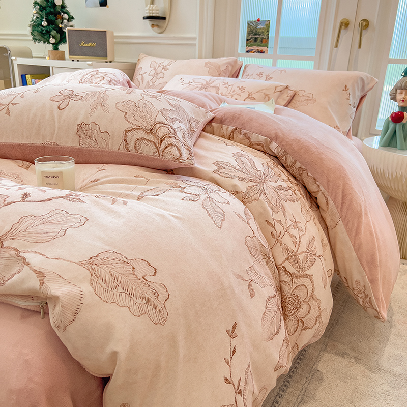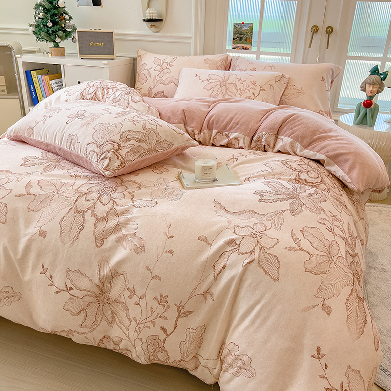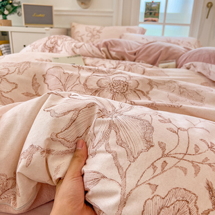 冬季 A全棉磨毛B牛奶珊瑚绒四件套被套双人加绒被罩法兰绒纯棉被单
