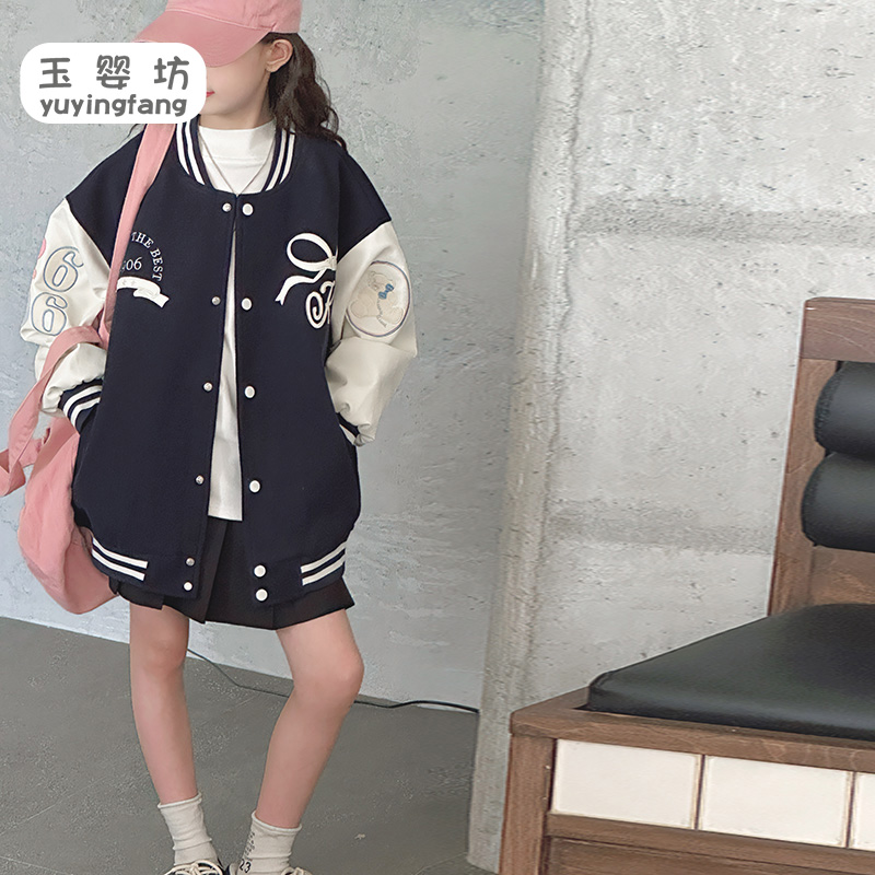 时髦棒球服 休闲上衣中大童秋款 玉婴坊新款 女童春秋外套洋气韩版