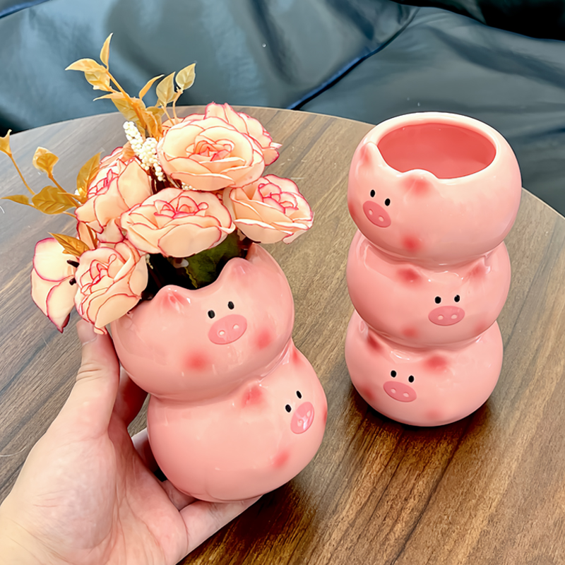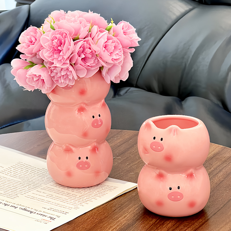 欧式 饰摆件 玫瑰插花花瓶白色简约陶瓷花器客厅餐桌干花鲜花水培装