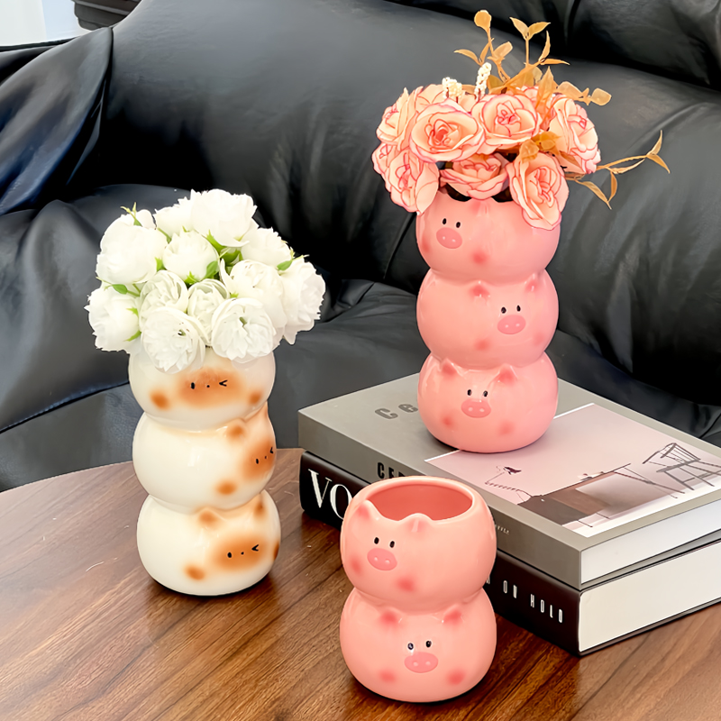 法式 饰花器 简约现代奶油风陶瓷花瓶复古水培插花高级感客厅餐桌装