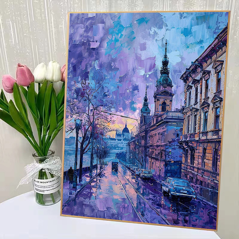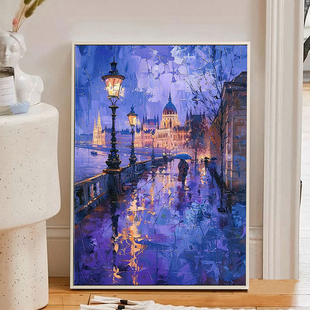 布达佩斯城堡雨夜数字油画手工diy填充填色客厅丙烯破碎感油彩画