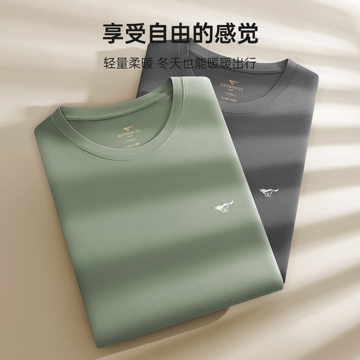 男生新款 打底棉毛衫 内搭保暖内衣 纯棉单件上衣冬季 七匹狼秋衣男士