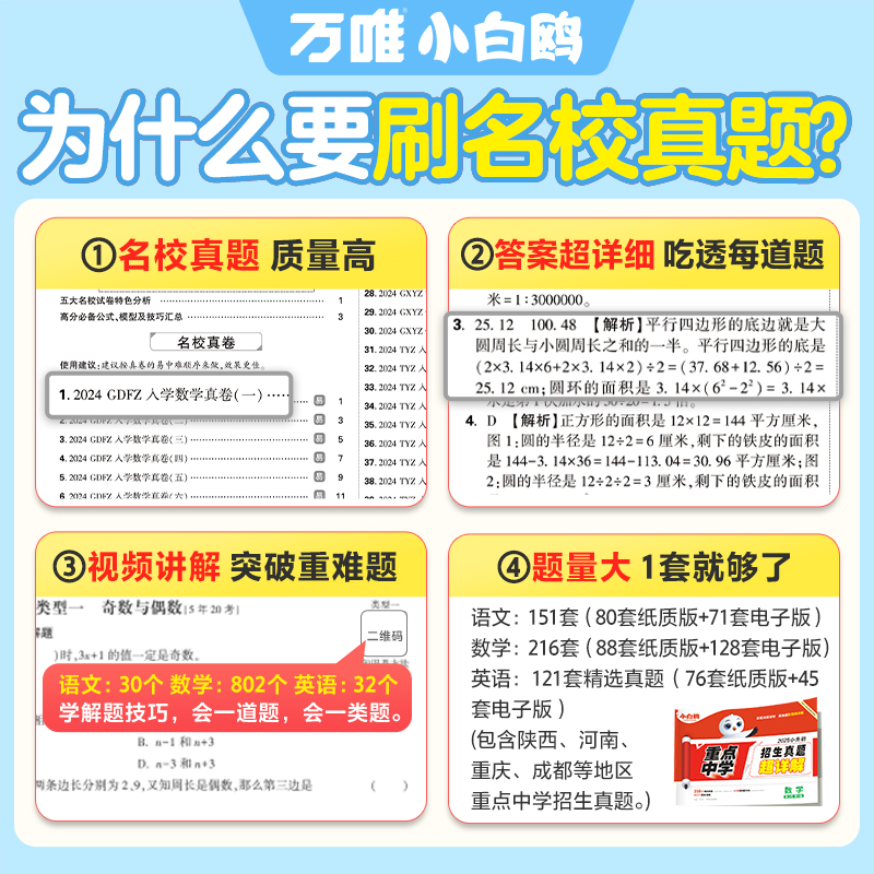 25版 星空测试卷万维 万唯中考小升初真题超详解小白鸥招生考数学语文英语毕业分班考重点中学真题试卷集锦四五六年级通用版
