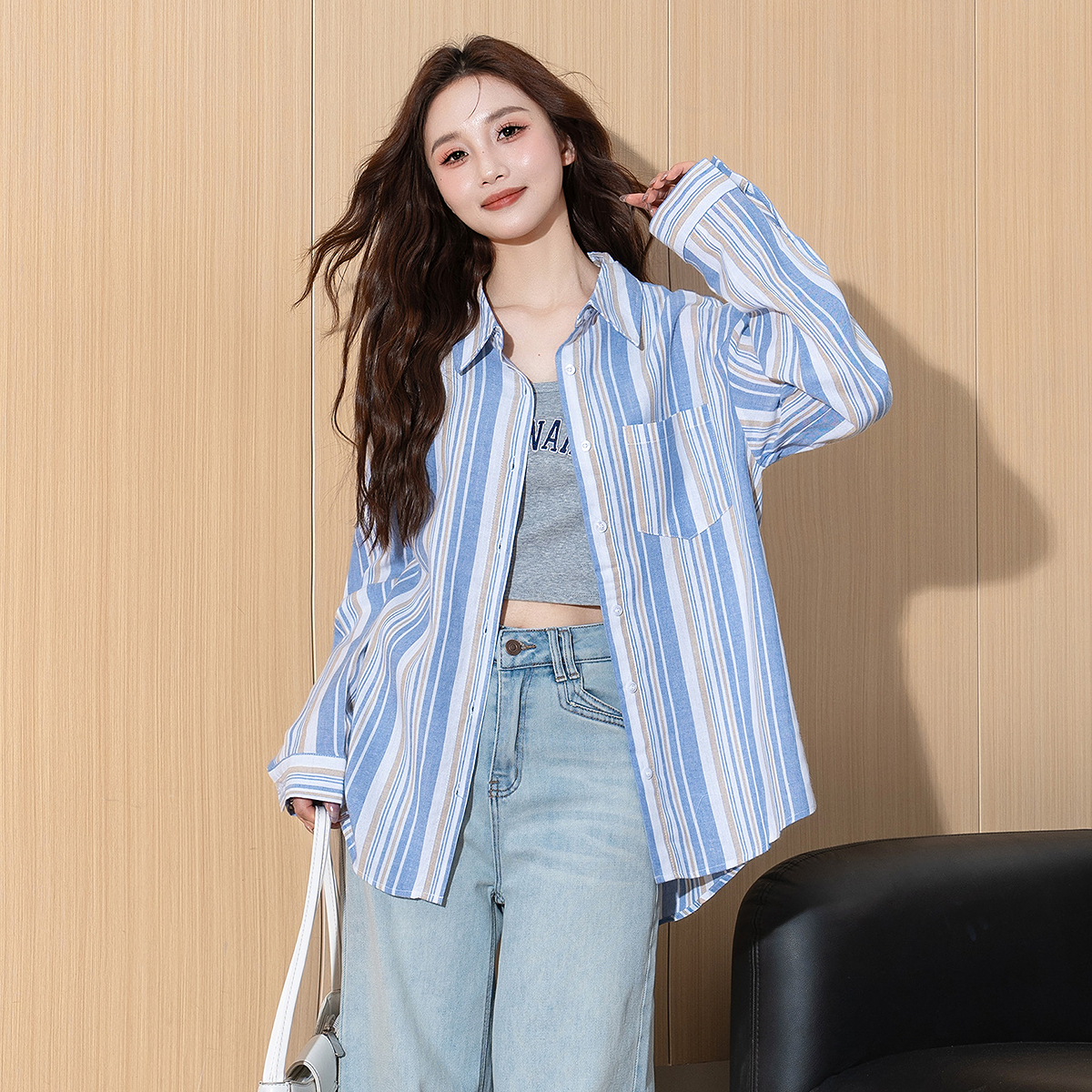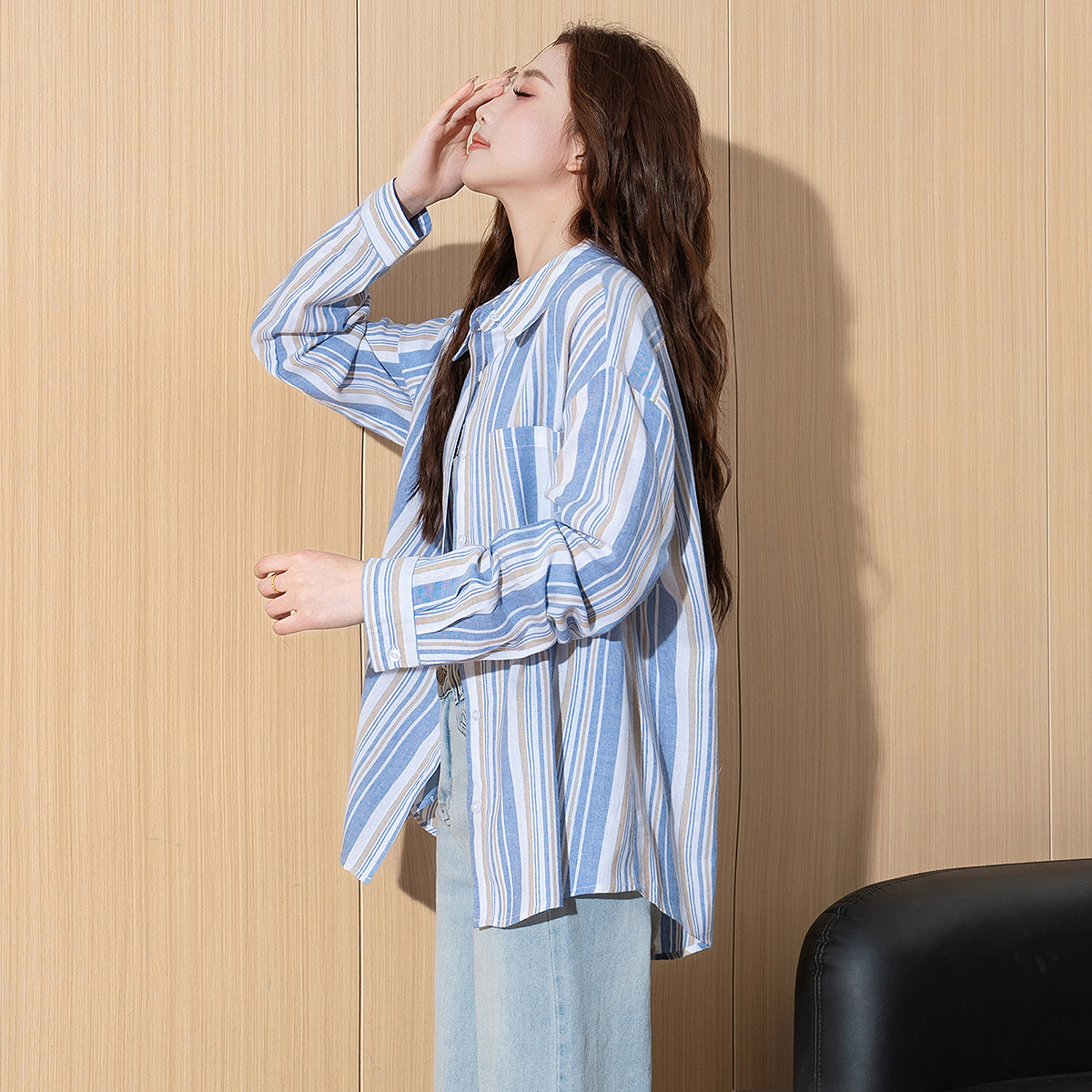 新款 男日系潮流秋季 纯棉宽松休闲廓形衬衣 衬衫 VR97泡泡纱条纹长袖