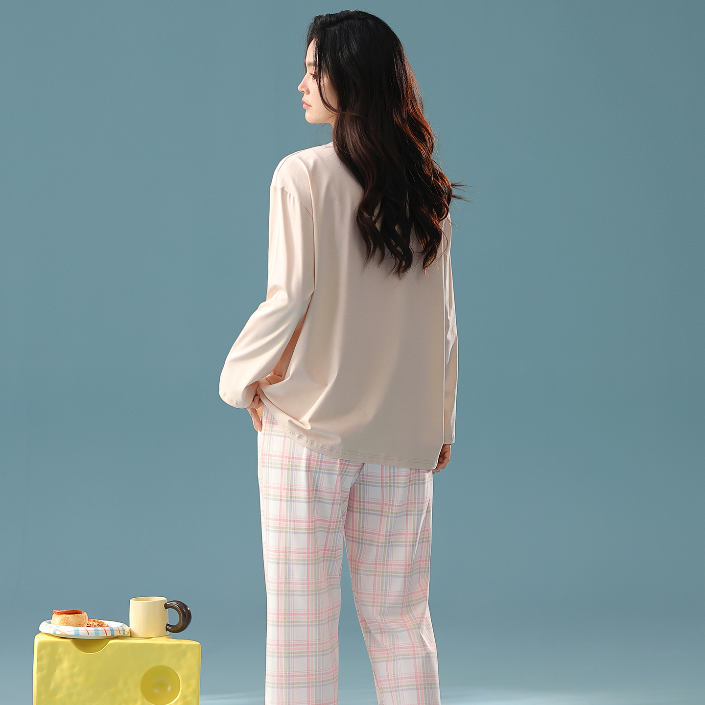 棉质长袖 女款 长裤 可爱休闲大码 家居服 抗菌套装 芬腾女士睡衣春秋季