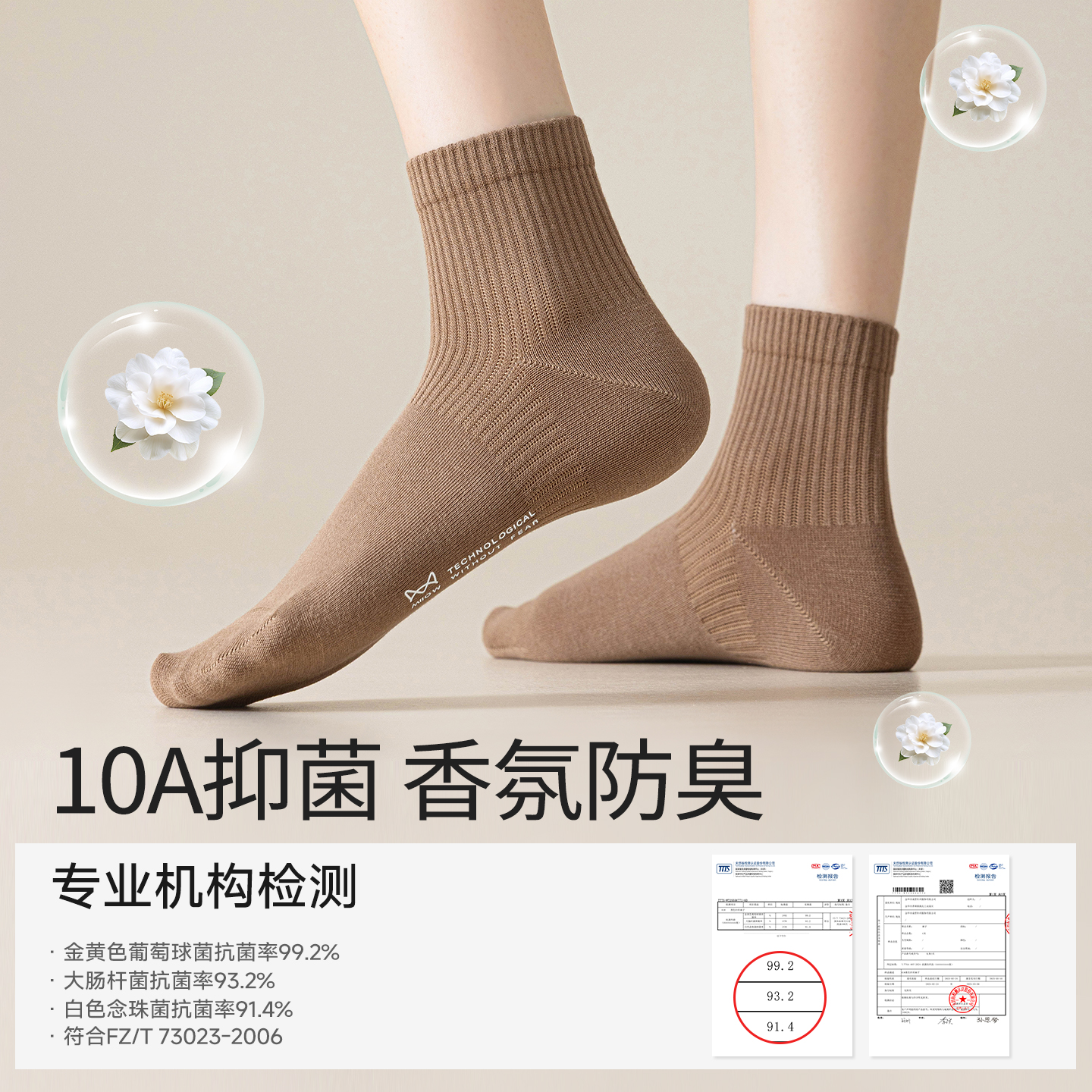 爆款 2025新款 秋冬防臭白色长袜 纯棉中筒春秋季 猫人山茶花袜子女款