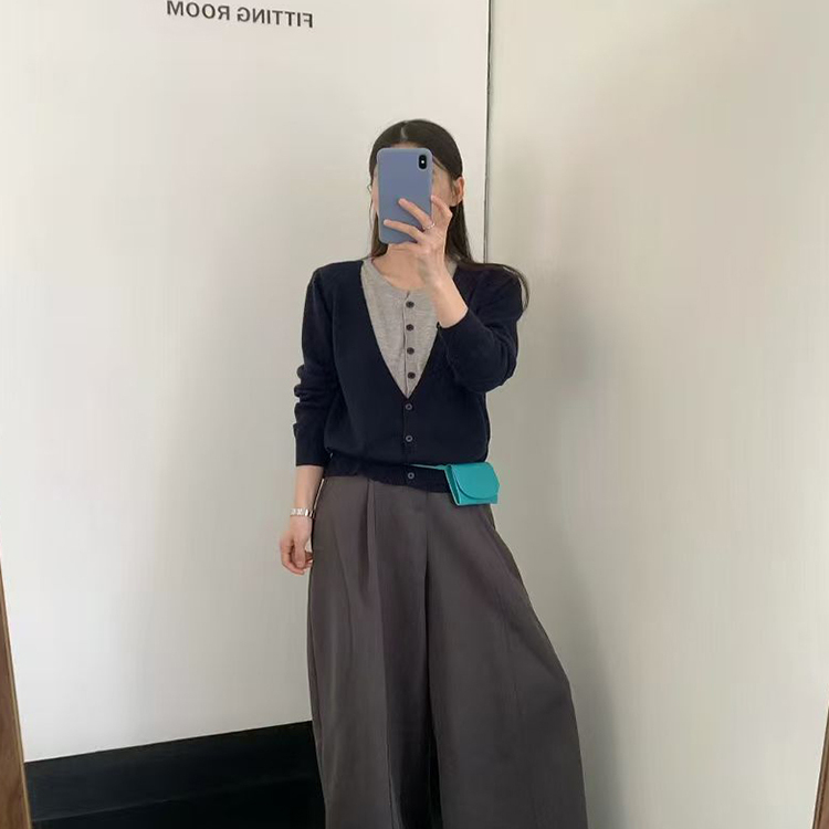 纯棉春秋外套纯色百搭圆领毛衣针织衫 宽松针织开衫 潮 女装 2025新款