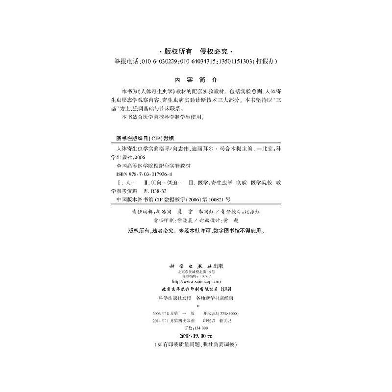 人体寄生虫学实验指导 迪丽拜尔·马合木提 向志伟