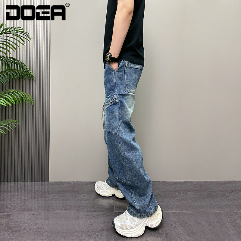 潮牌宽松高街痞帅直筒长裤 美式 男2025年秋冬新款 牛仔裤 子 阔腿工装