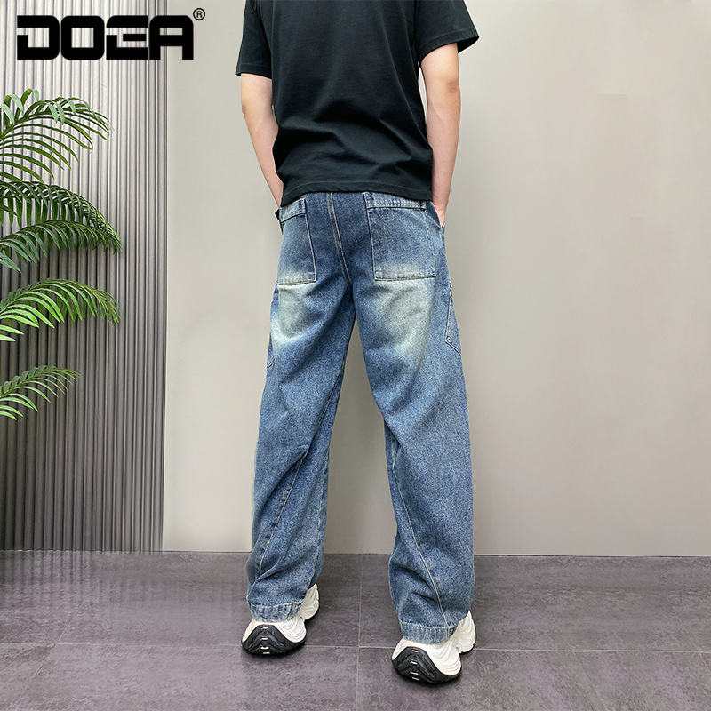 设计感铆钉水洗宽松直筒裤 V37美式 秋季 男款 子 解构立体褶皱牛仔裤