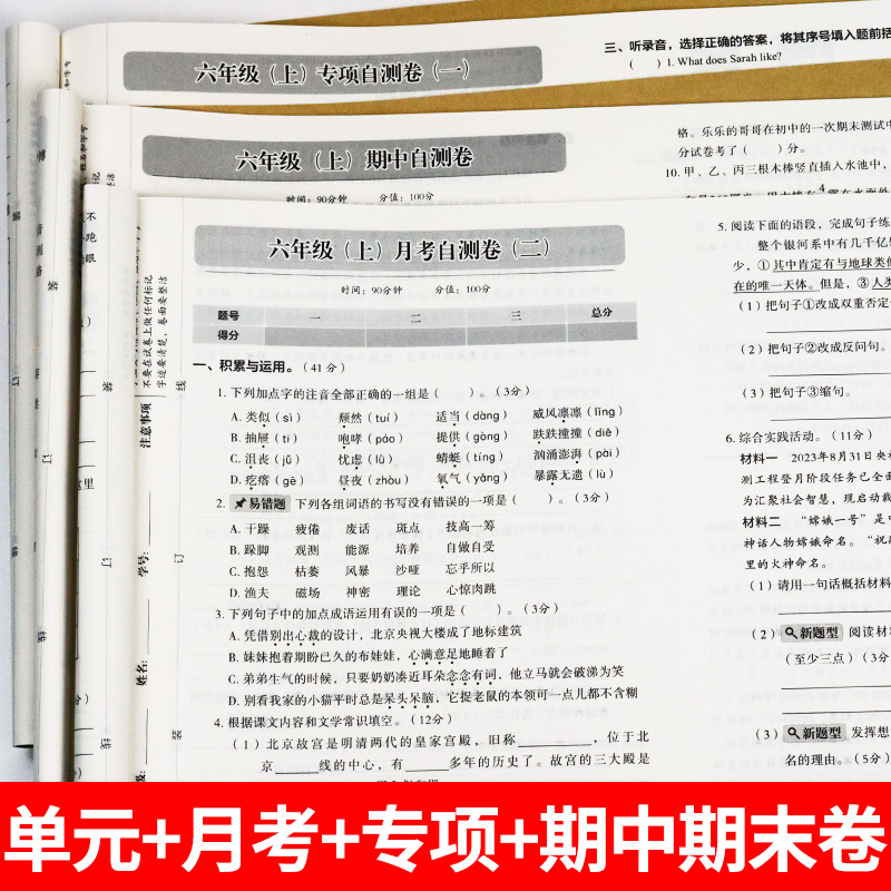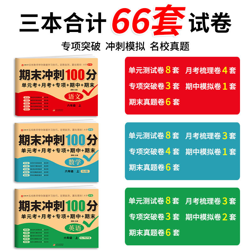 期末冲刺100分一百分上 小学6年级下册同步练习册专项训练题必刷题单元 下K 教材 六年级上册试卷测试卷全套语文数学英语配套人教版