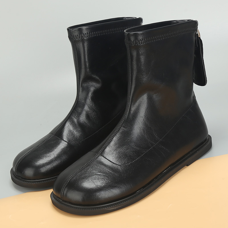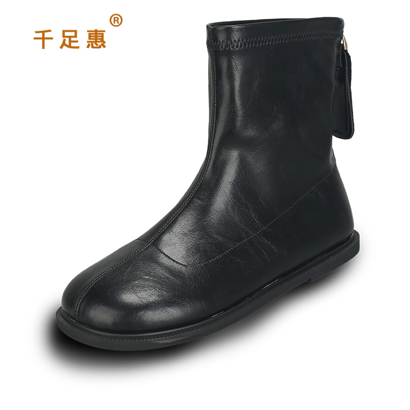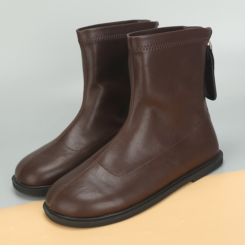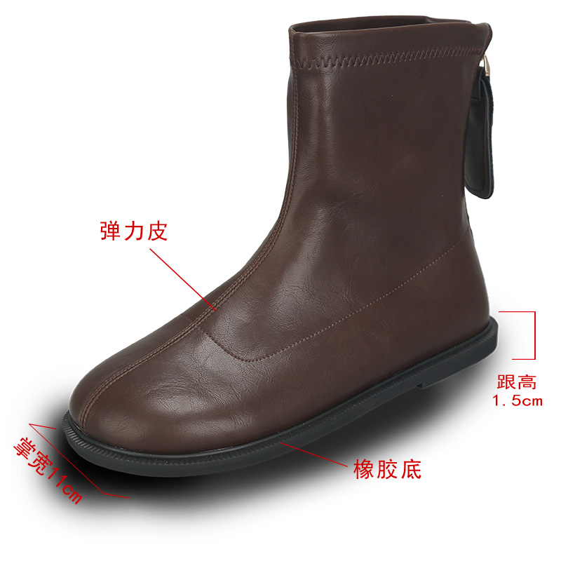 时尚 41到43平跟百搭显瘦弹力靴后拉链秋冬新款 短靴子女潮 女鞋 大码