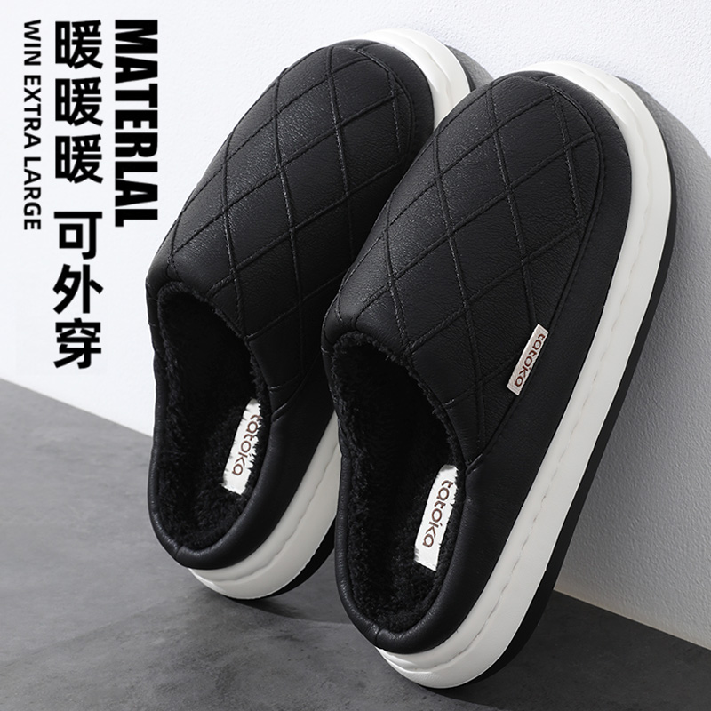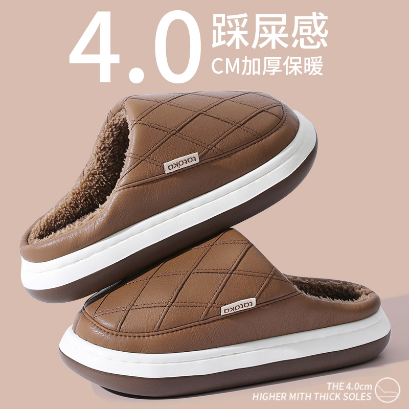 女款 老人防水棉拖鞋 保暖全包跟老年皮棉鞋 防滑加绒2025新款 女冬季