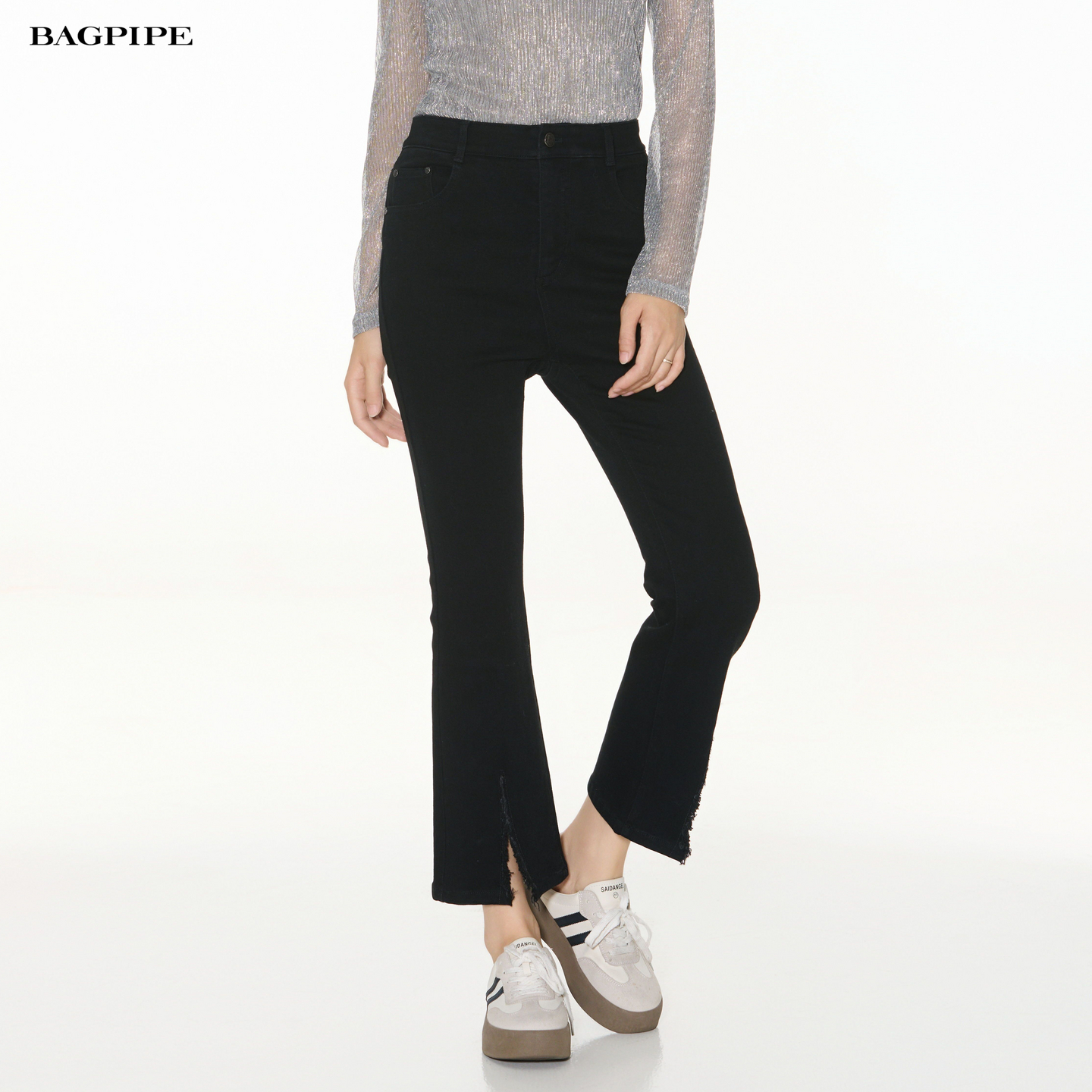 女气质通勤百搭九分裤 风笛2025秋季 显瘦高腰开叉微喇裤 修身 新款