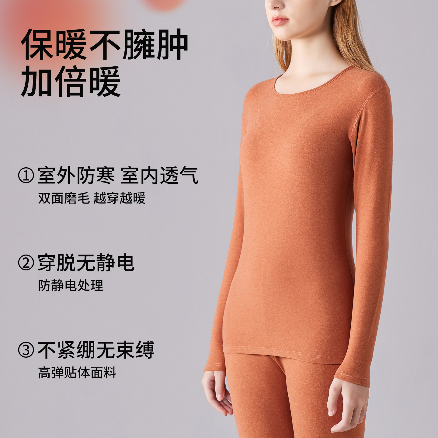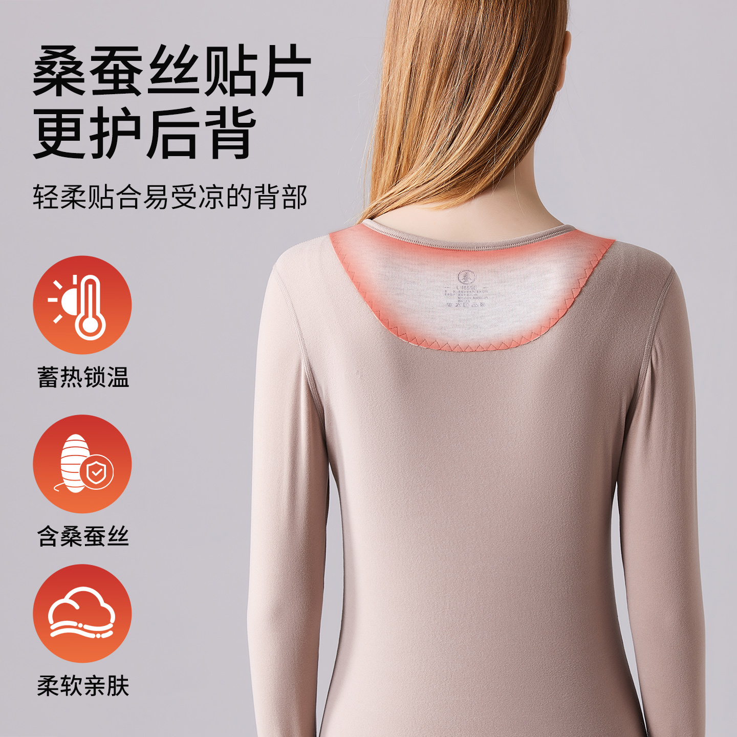 显瘦无痕打底内衣 修身 婷美秋冬桑蚕丝保暖套装 女双面磨毛秋衣秋裤