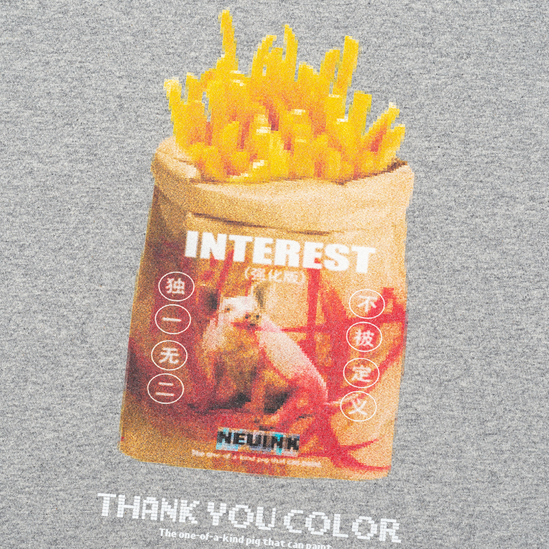 T恤男女同款 Neuink 猪加索联名薯条动物图案通勤宽松百搭圆领短袖