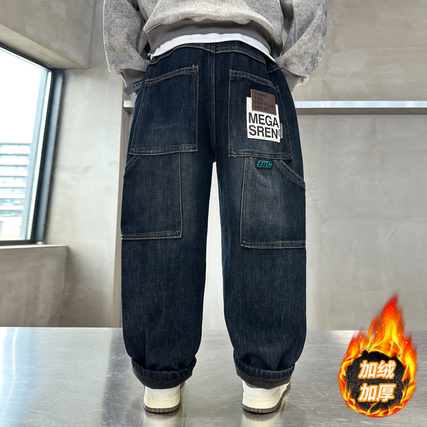 牛仔裤 儿童装 加厚保暖中大童冬装 子秋冬2025新款 男孩潮 男童加绒裤