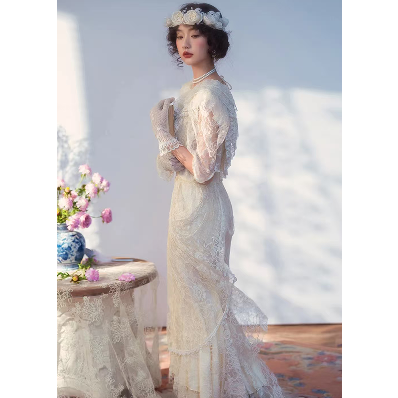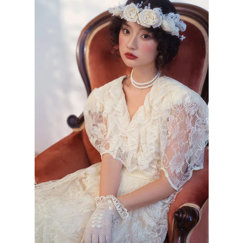 法式 复古浪漫轻婚纱新娘小众森系氛围感出门纱蕾丝轻奢订婚礼服裙