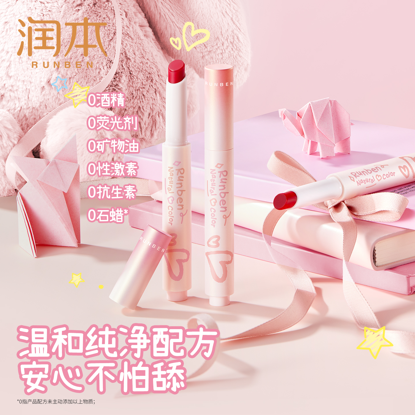 润本儿童口红淡彩润唇膏四季 滋润宝宝提色护唇膏女孩彩妆唇彩 保湿