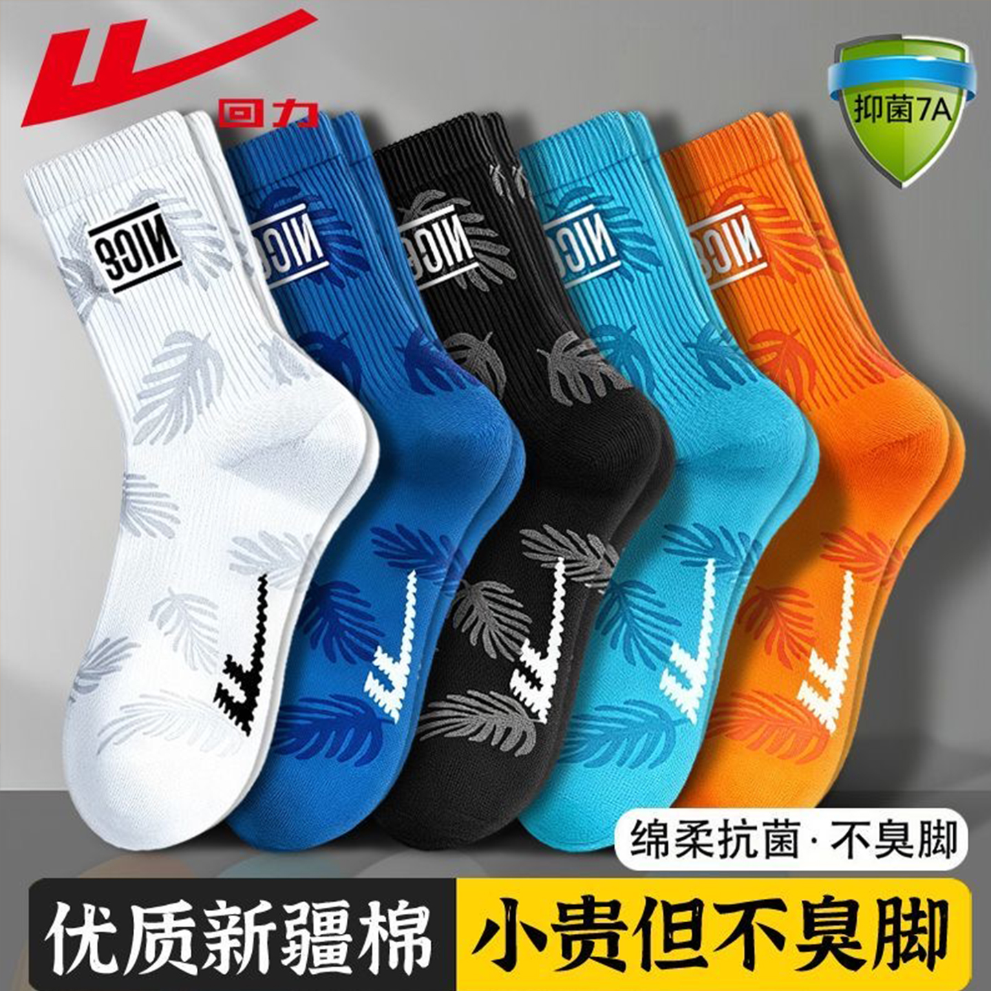 回力纯色新疆棉袜子男款 春秋吸汗防臭中筒袜冬加厚长筒袜100%正品