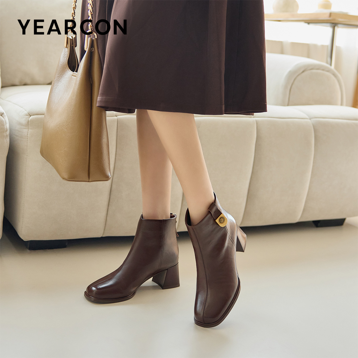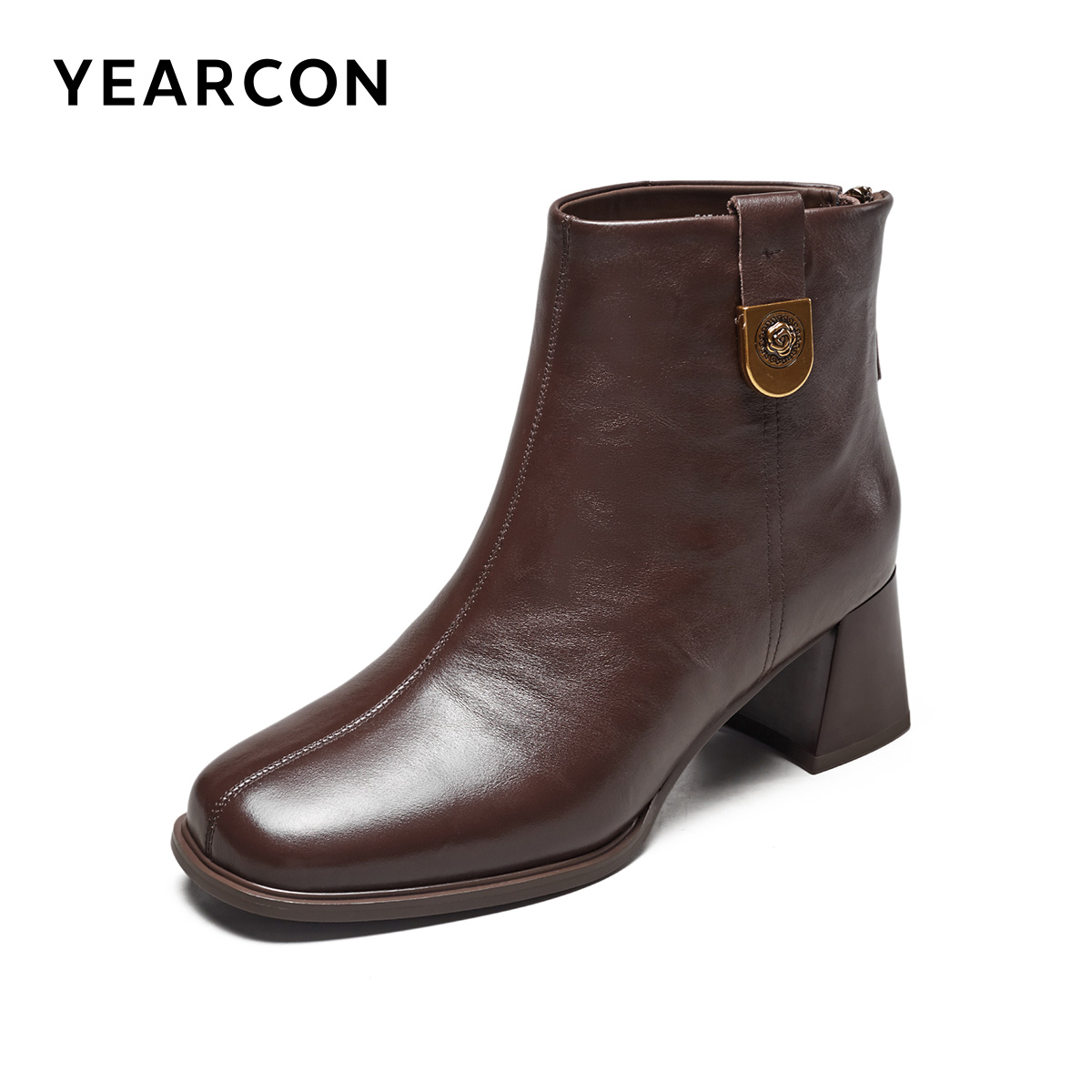 短靴粗跟气质显瘦配裙子单靴及踝靴女 真皮法式 意尔康女鞋 2025冬季