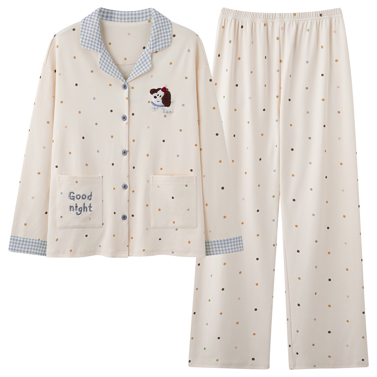 100%全棉可爱家居服套装 25年秋新款 长裤 都市丽人纯棉睡衣女士长袖