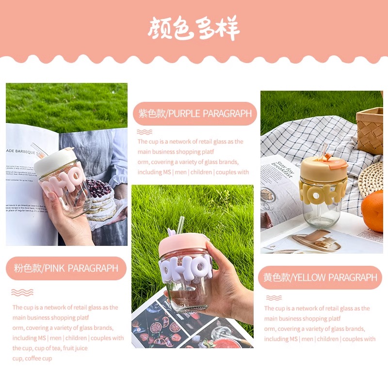 钢化玻璃杯家用儿童水杯吸管杯子女耐高温刻度牛奶杯喝水奶粉防摔