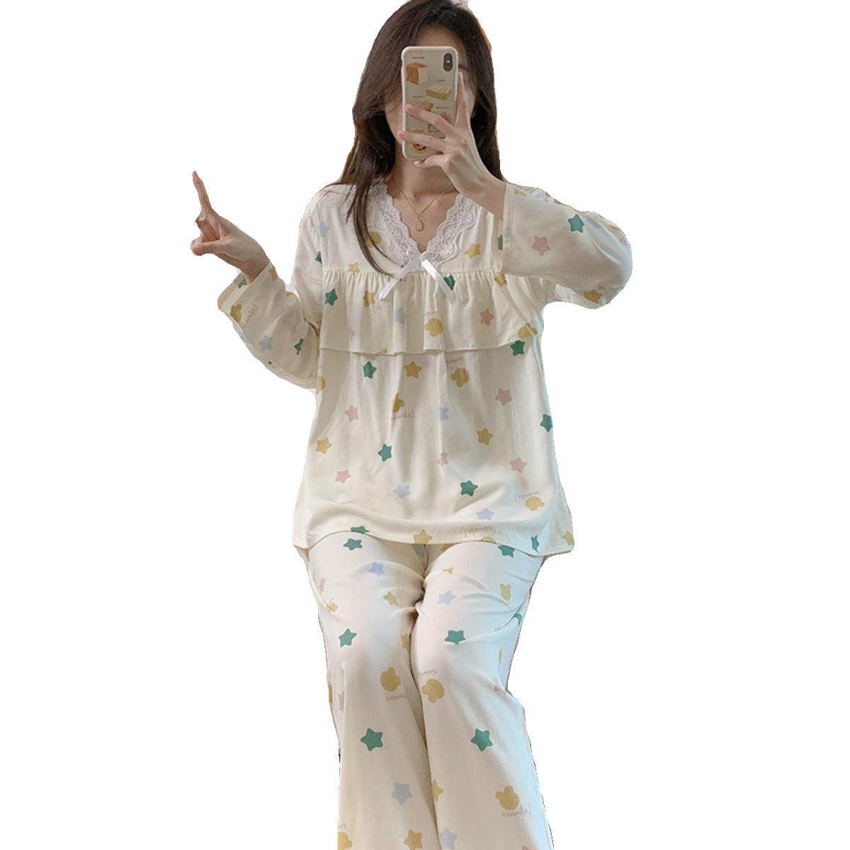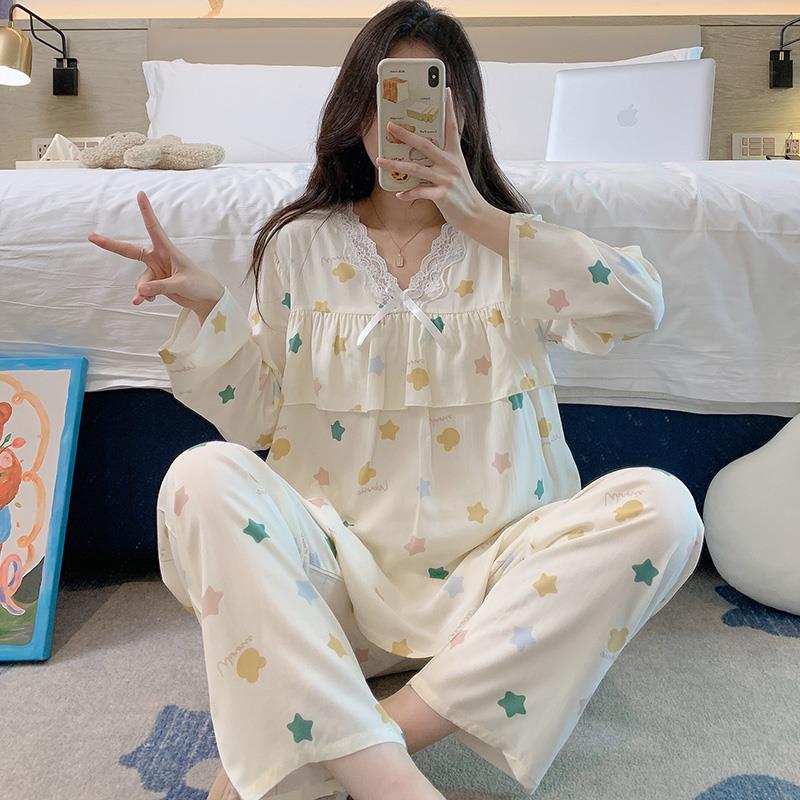 公主风防凸点绵绸家居服夏天棉 大尺码 红豆睡衣女春秋2025新款 长袖