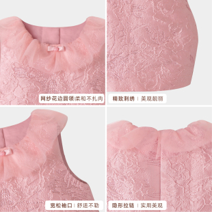 木本尚女童秋冬汉服背心裙2025新款 宝宝提花刺绣旗袍裙粉色可爱