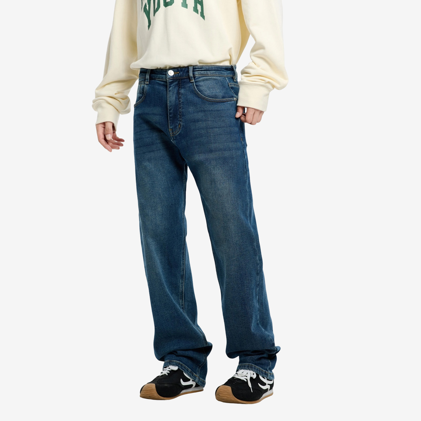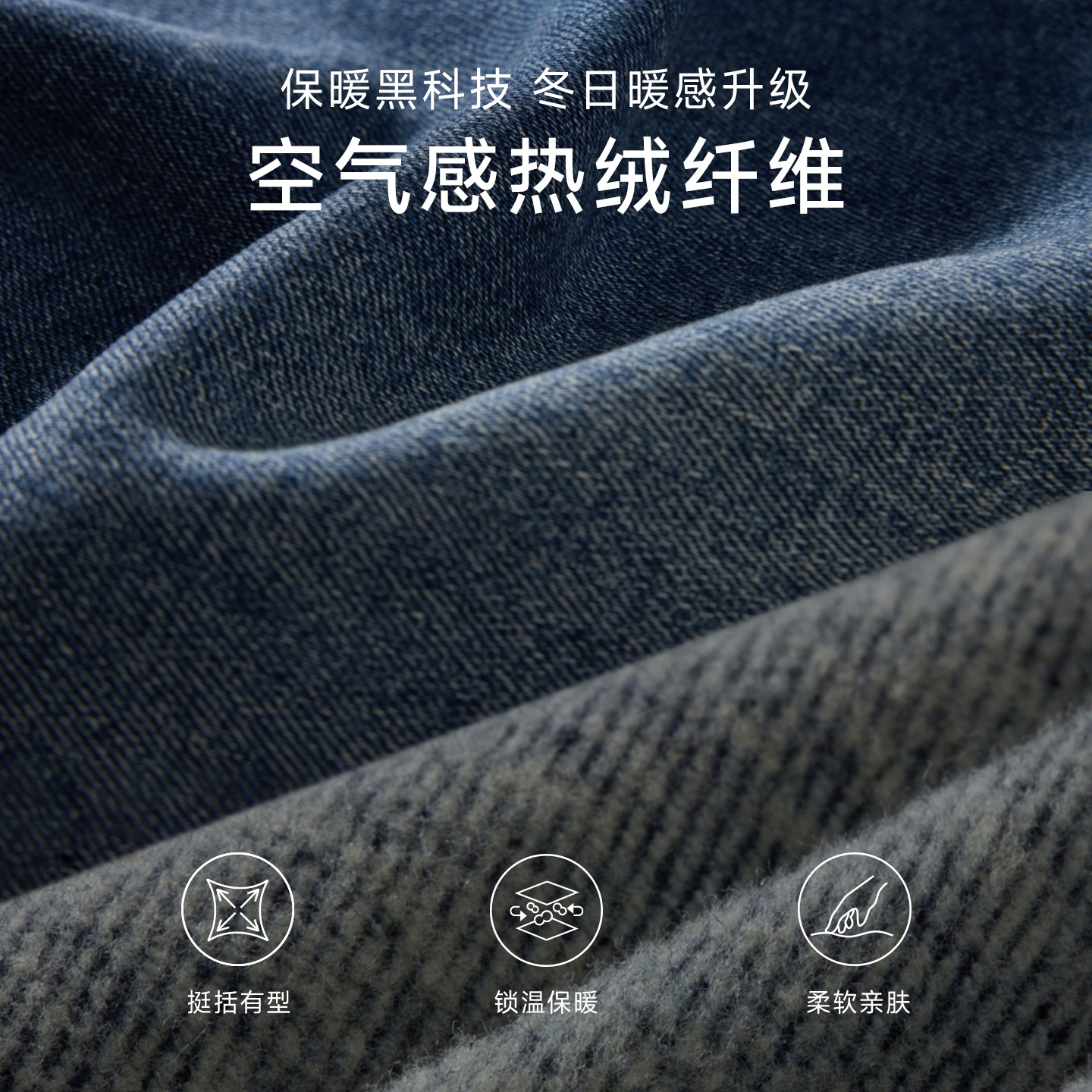 中年加绒休闲长裤 高腰直筒宽松2025秋冬新款 子男 男士 老爷车牛仔裤