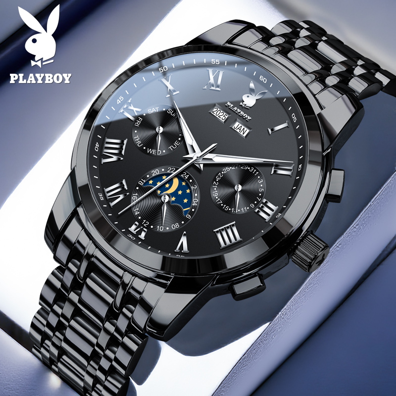 多功能腕表 男款 花花公子男士 手表大表盘机械表全自动商务防水新款