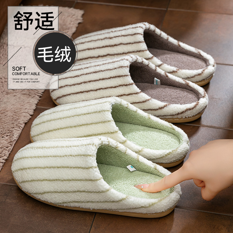 秋冬季 日式 2025新款 女款 室内家居软底防滑保暖地板棉拖 静音棉拖鞋