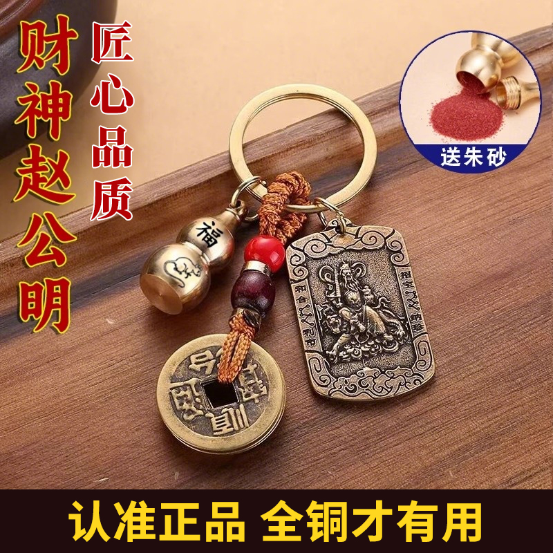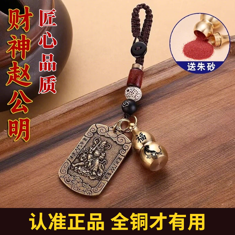 2025黄铜武财神赵公明令牌挂饰随身吉祥五帝钱葫芦汽车钥匙扣挂件