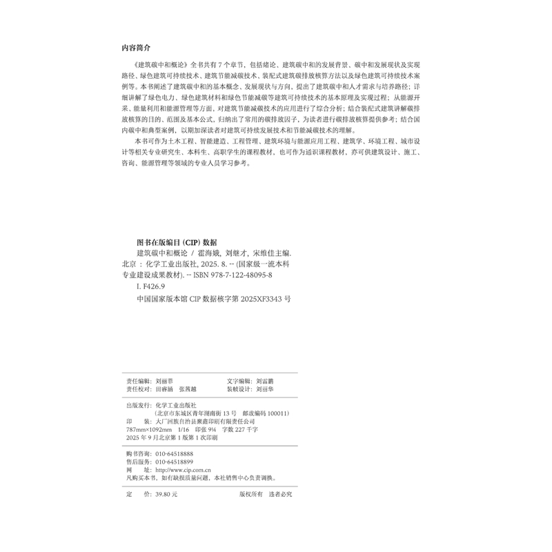 霍海娥 社新华书店正版 刘继才 主编大学教材化学工业出版 宋维佳 建筑碳中和概论