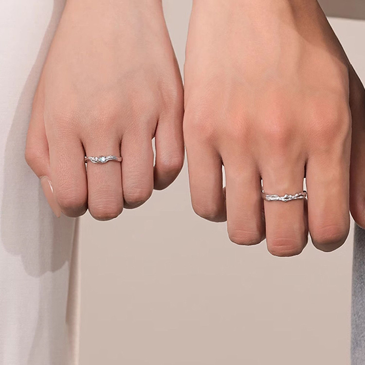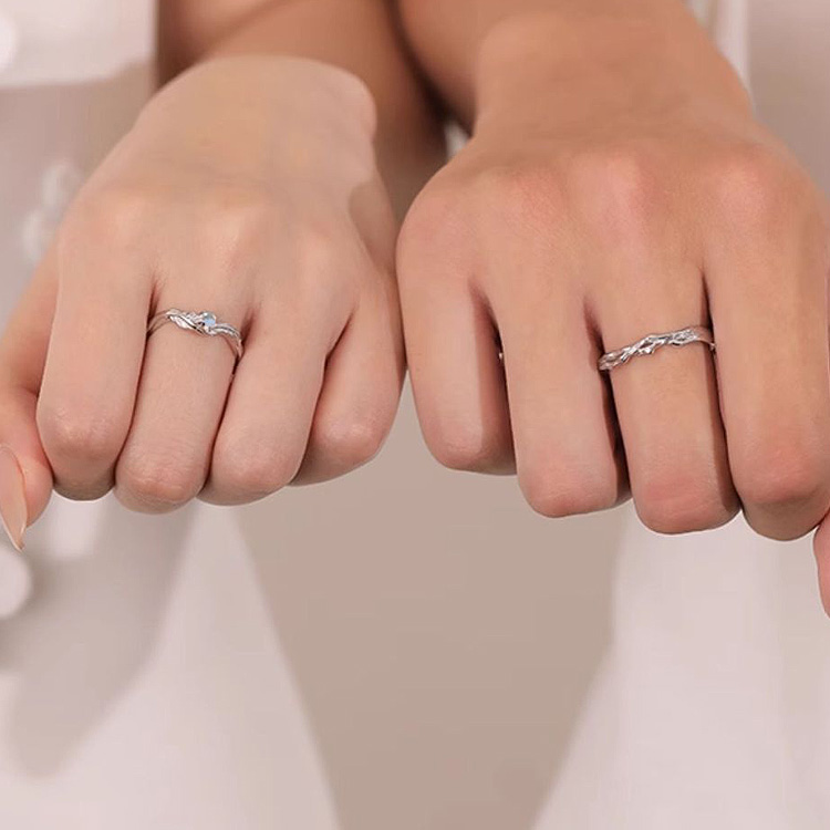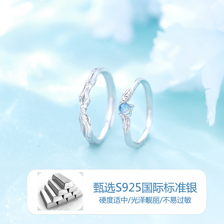 蓝桉与鸟情侣款 纯银戒指男女一对刻字定制轻奢高级感设计风对戒