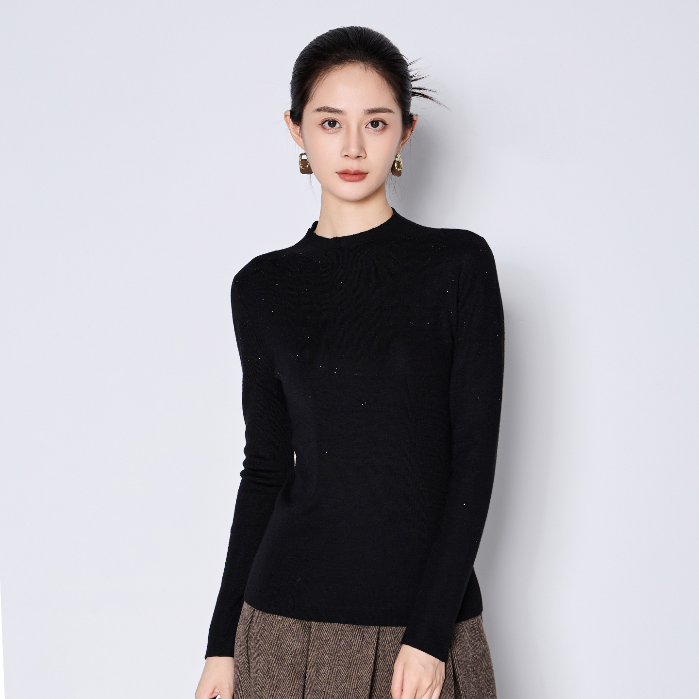 羊毛上衣 2025新款 打底衫 女半高领黑色内搭高级感秋冬针织毛衣女装
