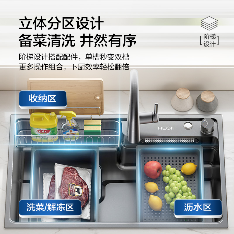 HEGII恒洁厨房洗菜盆台上台中台下水槽日式 加厚纳米大单槽