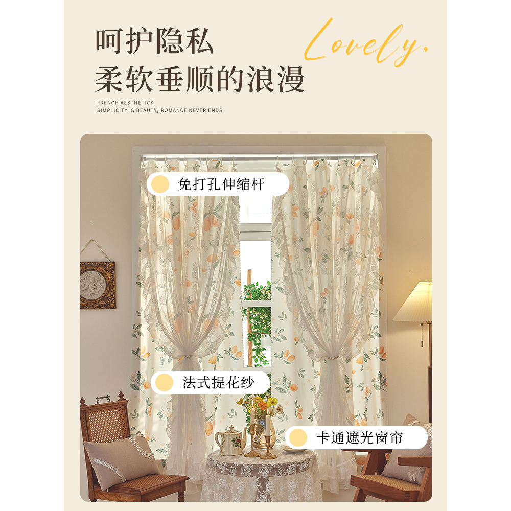 窗帘免打孔安装 饰帘浪漫女孩房纱帘简约卧室帘子 小清新温馨客厅装