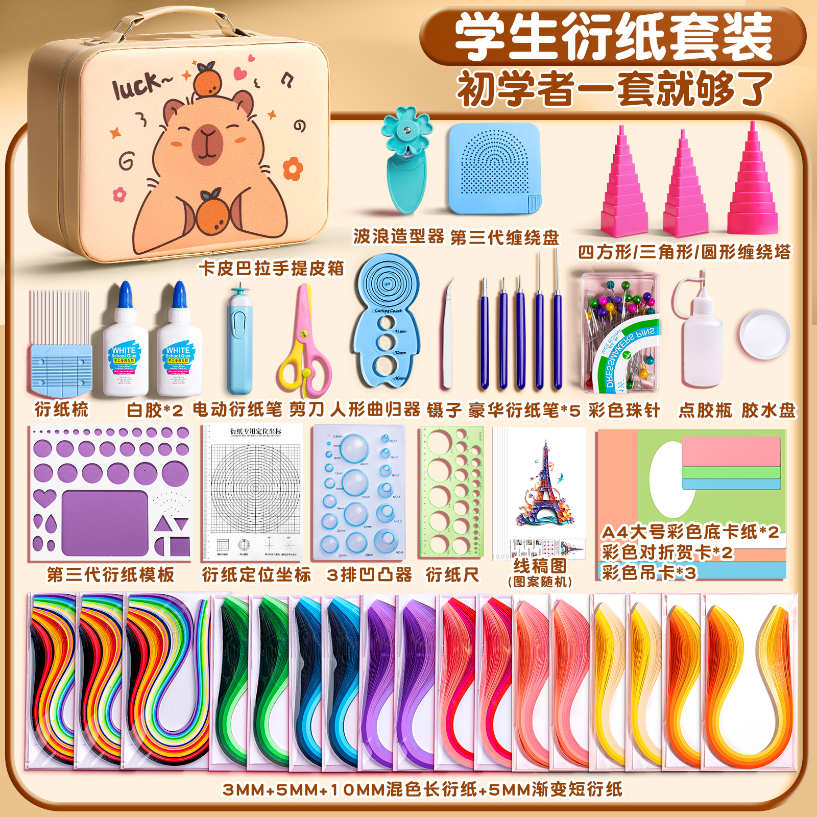 衍纸材料包套装 初学者衍纸画手工diy工具衍纸纸条胶水学生纸艺电动笔镊子儿童彩色线稿图收纳盒衍纸梳卷纸器