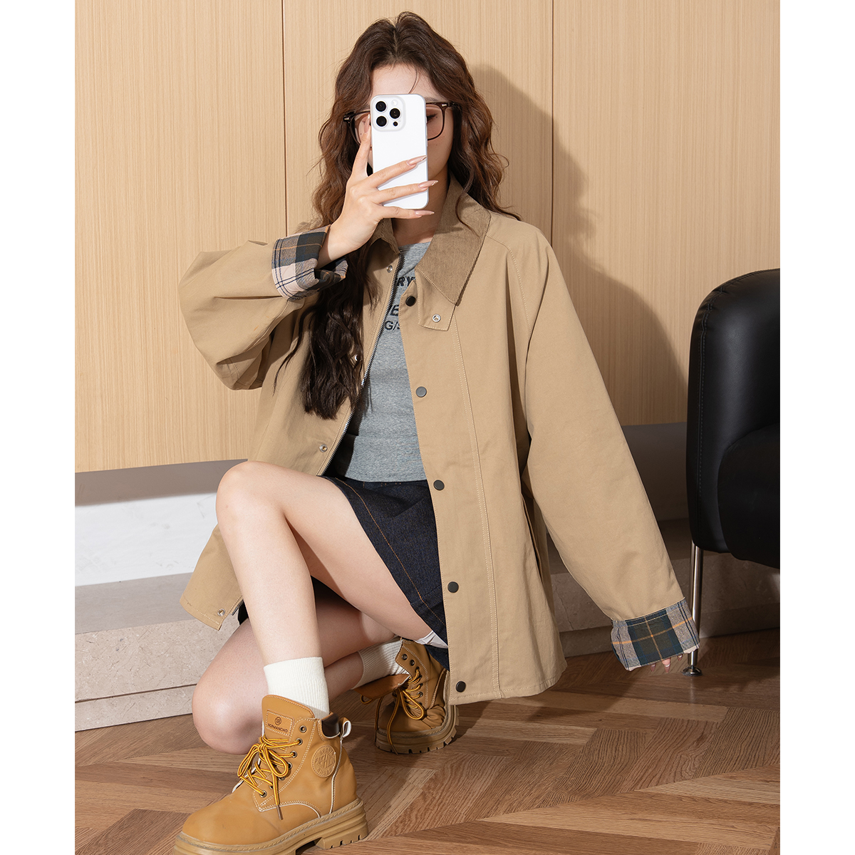 小个子风衣翻领夹克女装 唐狮25秋季 外套女生巴恩风高级感时尚