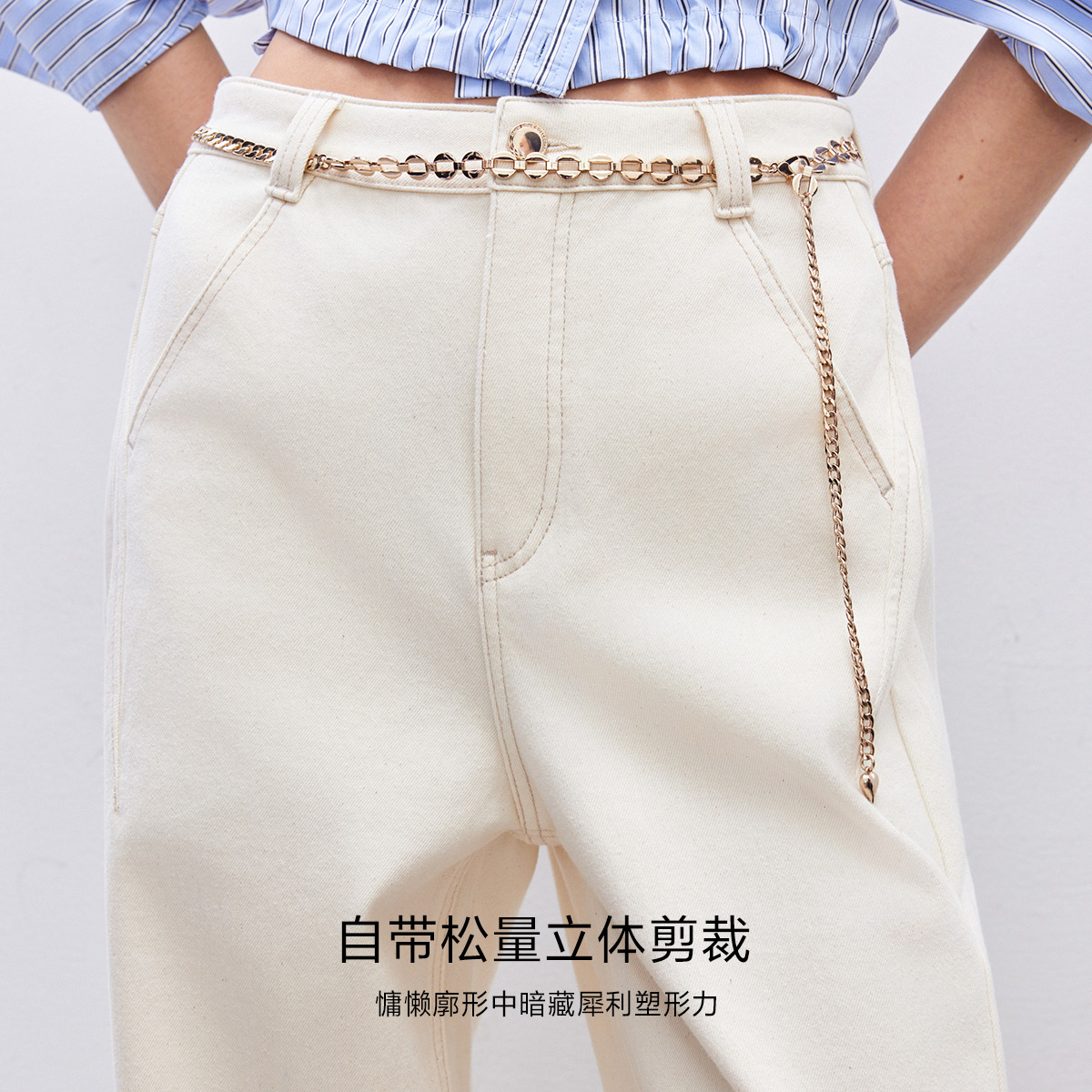 2025新款 女秋季 九分裤 子休闲女裤 米白色牛仔裤 小个子法棍裤 直筒裤