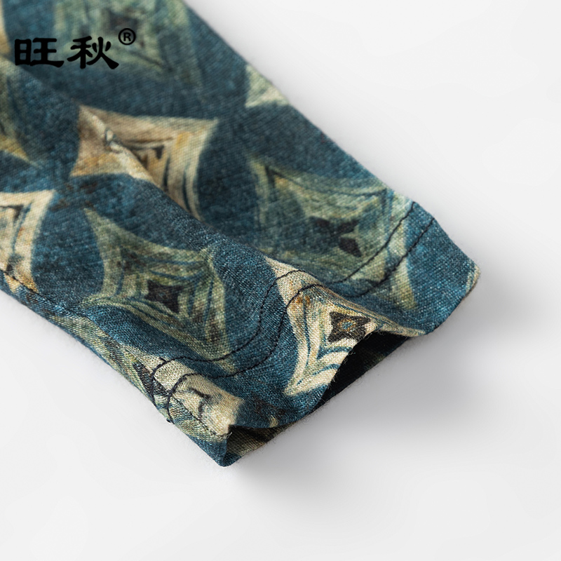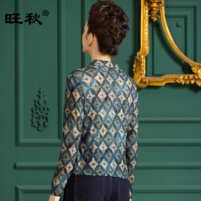 女针织衫 中年女装 毛衣洋气花色衬衣薄款 女翻领妈妈装 印花羊毛衬衫