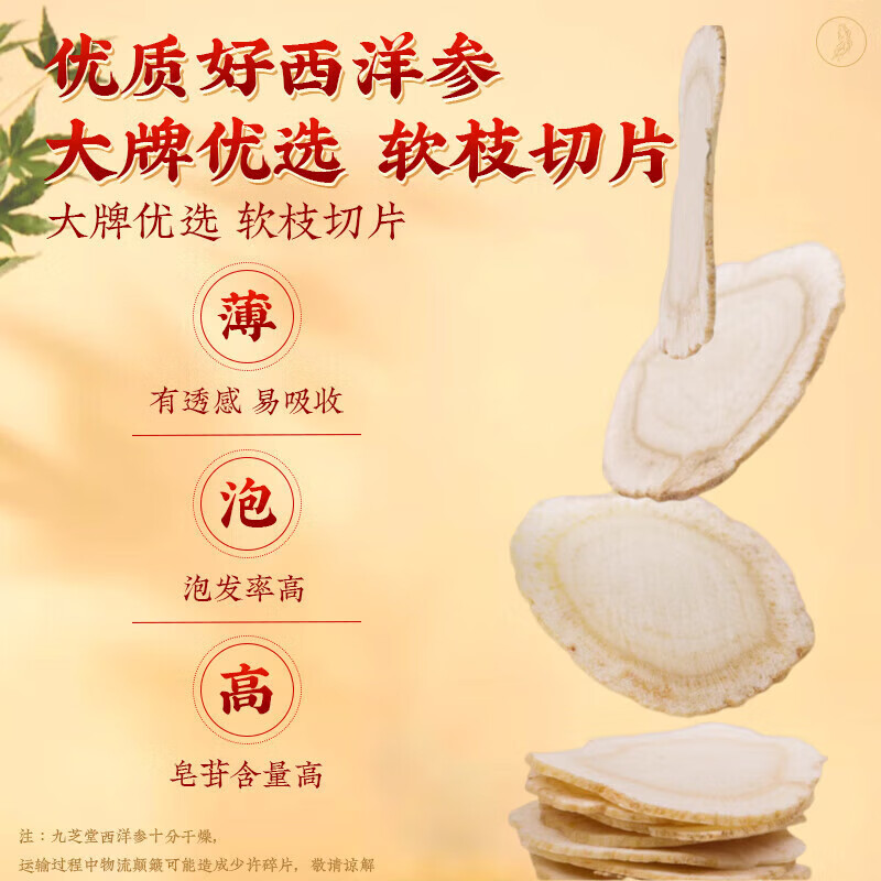 九芝堂西洋参切片泡水打粉特级长白山人参花旗参大片皂苷丰富正品