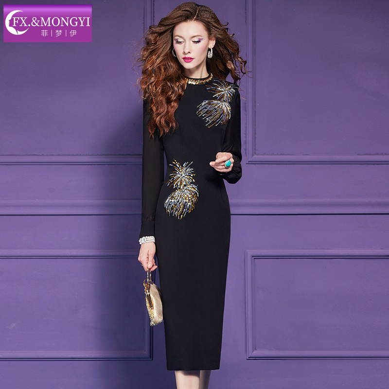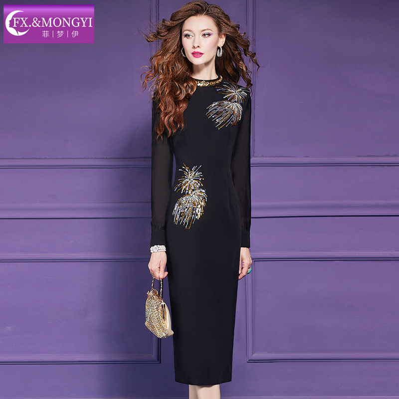 小个子显瘦直筒裙子 新款 dfvc气质撞色拼接长袖 连衣裙女2025年秋季