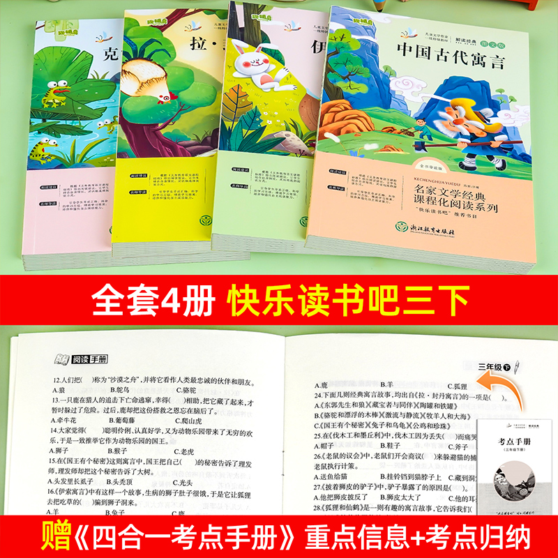 全套4册中国古代寓言故事三年级下册必读 课外书快乐读书吧老师小学生3下学期阅读书目伊索寓言克雷洛夫拉封丹全集配套人教版