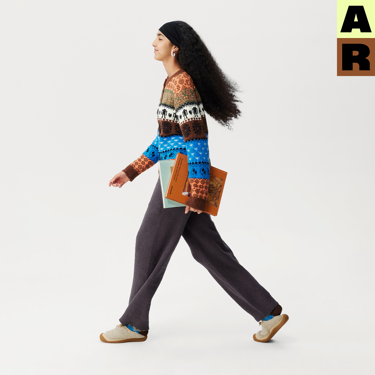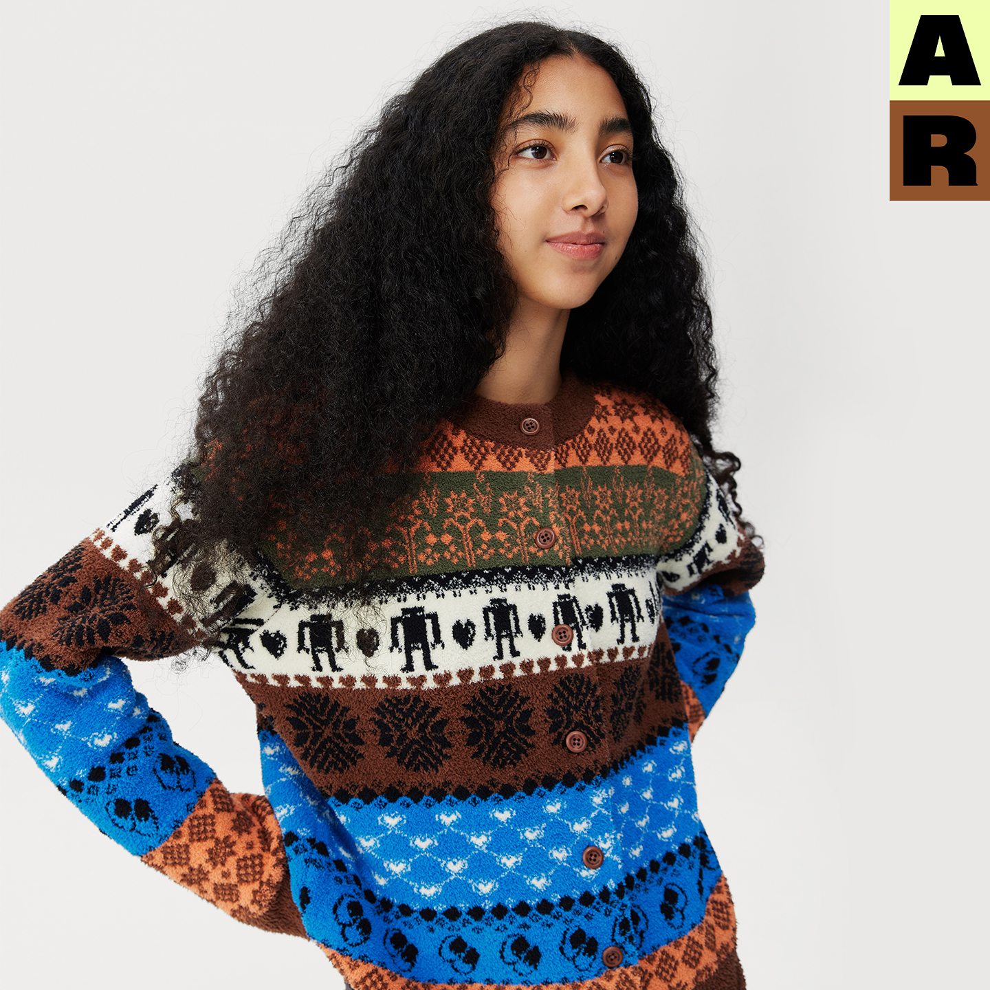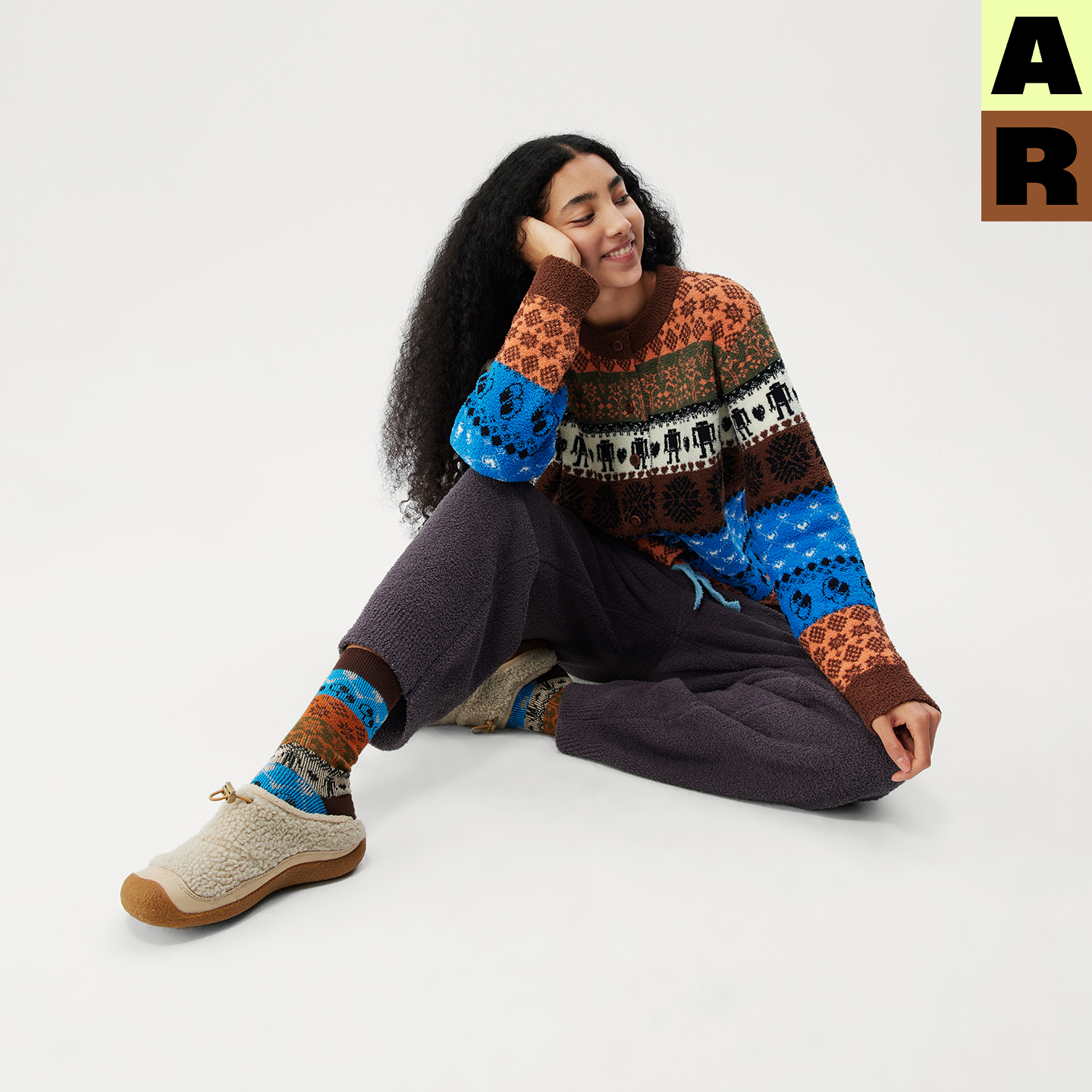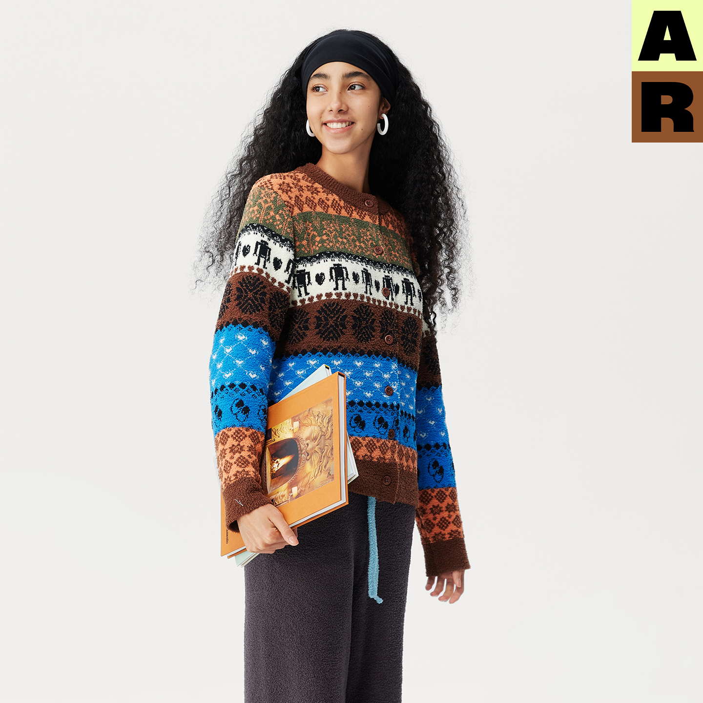AR民族花纹半边绒家居服可外穿游牧风针织开衫 女 上衣秋冬保暖上装